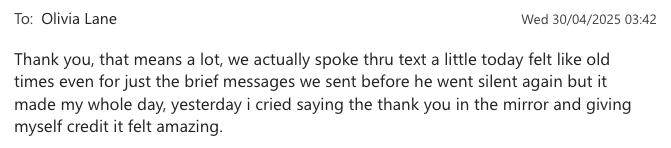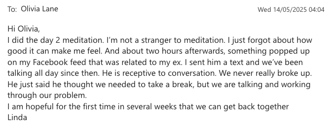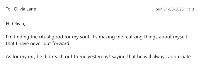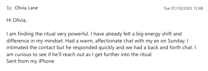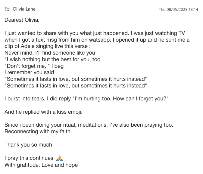 When you visualise him holding you, choosing you, coming back to you... your brain floods with oxytocin. You feel it as real connection. Neurologically, it is.
